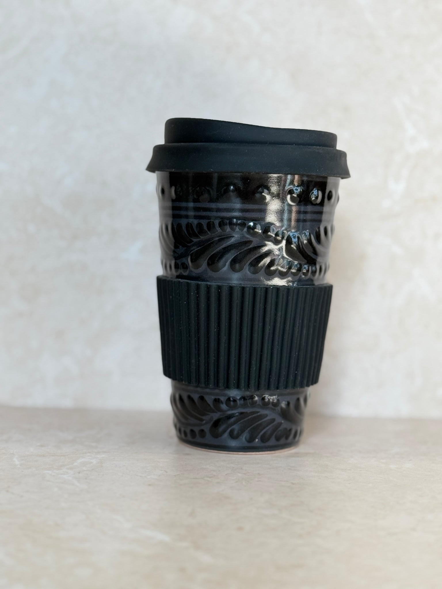 • Load image into Gallery viewer, Talavera Travel Mug | Black on black
